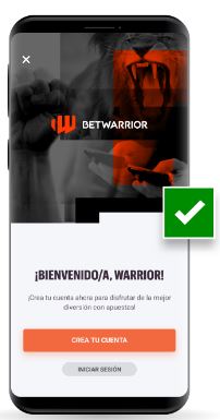 Podemos descargar la app de Betwarrior ingresando directamente desde nuestro teléfono celular al sitio oficial. Una vez dentro, en el menú desplegable encontraremos la opción “Descargá la app”.